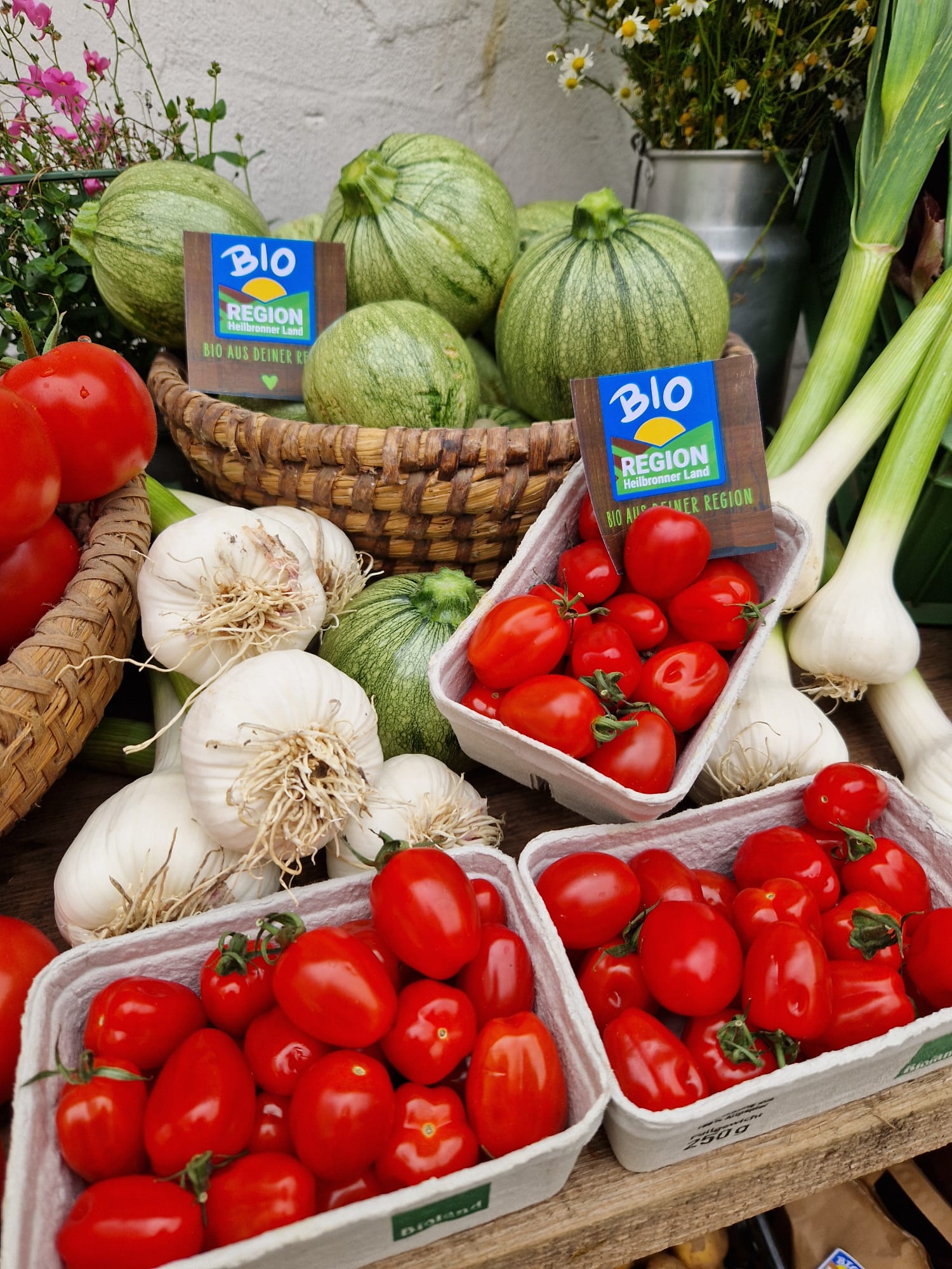 Gute Böden, mildes Klima und eine vielfältige Landschaft – das sind beste Voraussetzungen. Gemüse, Obst, Getreide, Hülsenfrüchte, Kartoffeln, Wein, Honig, Rinder und Molkereiprodukte – so bunt ist die Produktpalette der Bio-Region Heilbronner Land.